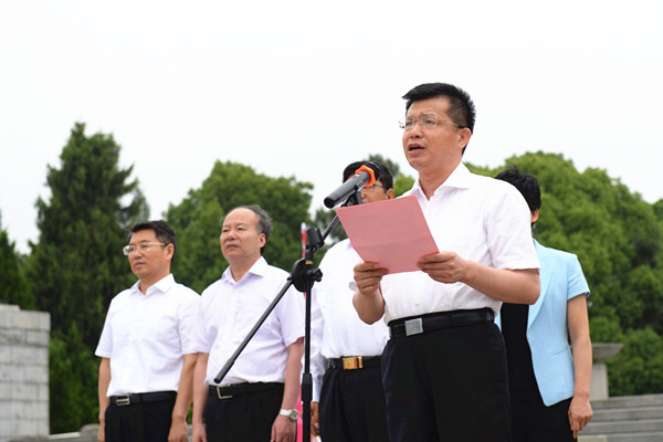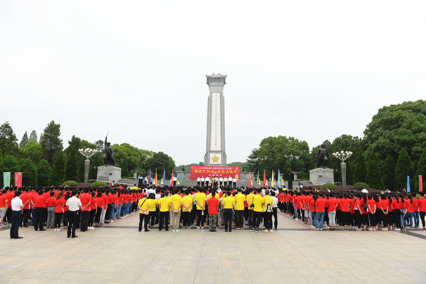本网讯 (通讯员 张章  刘鹏)最大的思政课开讲啦!5月29日,2018年湖北省大学生“青年红色筑梦之旅——再进大别山 红色永流传”主题活动在红安县烈士陵园举行。活动由湖北省教育厅和黄冈市人民政府主办,我校和红安县人民政府承办。