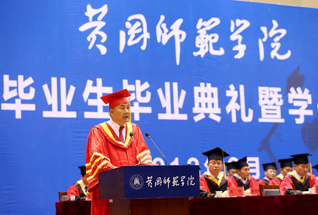 陈兴荣发表讲话。他代表学校向全体毕业生表示祝贺。他指出,四年来,我们一起见证了110周年校庆的辉煌时刻,一起经历了师生协力抗击洪水漫淹校园的悲壮瞬间。因为你们出色的表现,黄师赢得教育部本科教学工作水平评估专家的高度评价;也因为我们的不懈努力,学校顺利度过两校资源整合的磨合期,在向应用型大学转型、内涵发展上取得力所能及的成绩,同学们的学习生活条件也得到一定的改善。陈兴荣表示,几年的时间内,你们褪去了懵懂、稚嫩和浮躁,收获了独立,成熟和坚定。黄师校训精神熏陶培养出的气质和修养将会伴随你们终身,支撑你们去创造一个不庸俗、不平凡的人生。陈兴荣深情寄语毕业生,一是要怀揣梦想,勇于创新。要勇立时代潮头,志存高远,求新探异,推陈出新,在有趣的折腾中开创精彩人生;二是要锲而不舍,持之以恒。要在变动不居的时代中保持宁静自守的定力和行稳致远的耐力,坚定不移地朝着心中的理想前进,在扬帆远航中开创辉煌人生;三是要自律自强,阳光自信。有天赋的人比比皆是,而最终成功的永远是脚踏实地和自律的那一部分。陈兴荣还向毕业生推荐了网络推文《早睡早起,是性价比最高的自律》,希望他们能从管理睡眠入手,将有限的生命和热情,用在最有价值的事情上,不负光阴,自信笃定,在高歌猛进中开创卓越人生。
