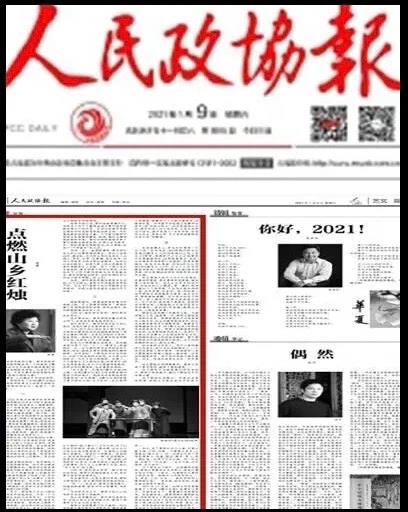 1月9日,《人民政协报》06版以《点燃山乡红烛》为题,刊发了我校特聘教授、国家一级编剧、大型校园黄梅戏音乐剧 《霜天红烛》编剧侯露的文章, 文章从创造思路、创作过程、剧情人物的介绍等三个方面阐述了我校大型校园黄梅戏音乐剧《霜天红烛》的创排历程。文章指出这次《霜天红烛》的创作与公演的许多环节对于师范学院的教学内容和方式是一个有意义的拓展,并表示实现中华民族伟大复兴应让优秀传统文化在校园得到持续的传播与传承。